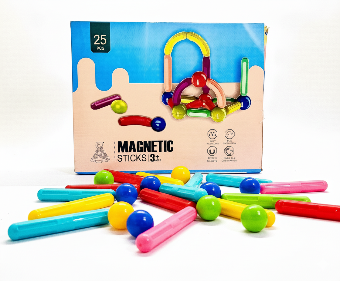 25-piece Magnetic Building Sticks set — colorful rods & balls for creative STEM play. Durable, safe, perfect for kids 3+. Buy now for hours of constructive fun!